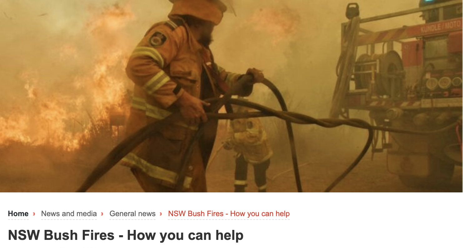 The NSW RFS have summarised how you can help, including links to key charities, instructions for how to support their volunteers and links to other relevant organisations that may need support (e.g. animal welfare).