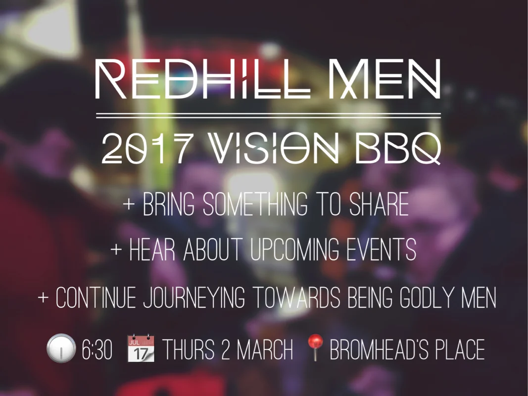 Hear about what's in store for Redhill Men in 2017! Bring food to share.