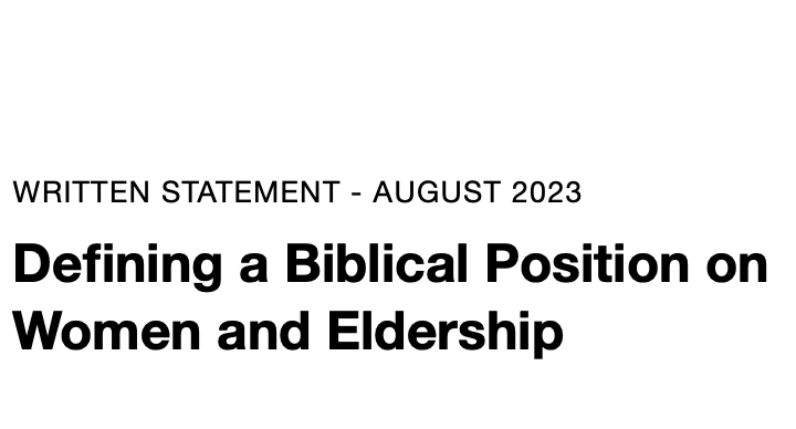 Statement: ‘Defining a Biblical Position on Women and Eldership’ by Bridgetown Church, Portland.